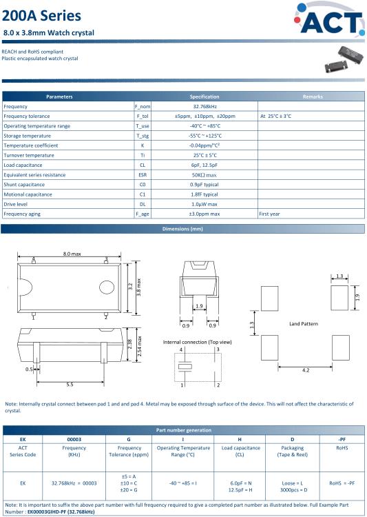 ACT晶振,200A晶振,EK00003GIHD-PF(32.768kHz)晶振