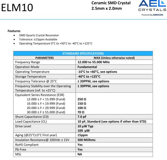 Load Capacitance (CL) | 10 pF, Standard (see options if other than STD) |