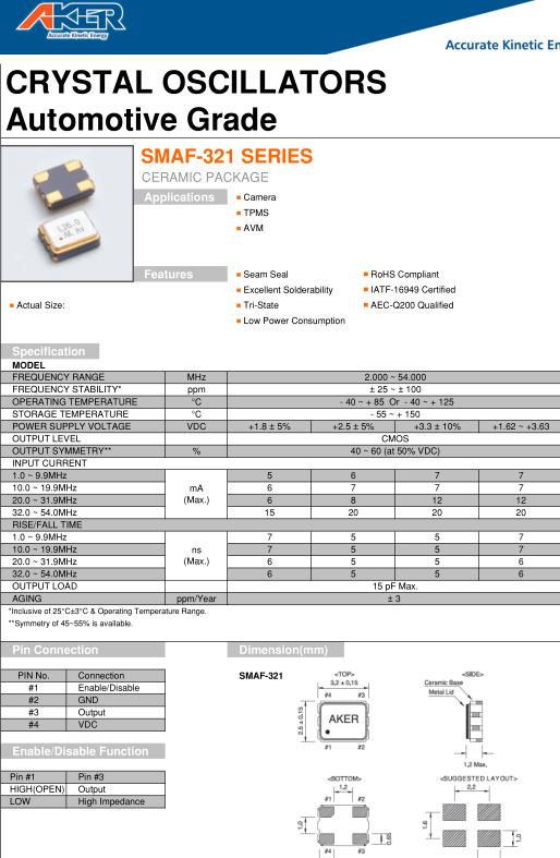 AKER晶振,SMAF-321晶振,CMOS輸出晶振