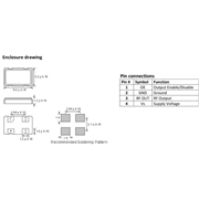 Enclosure (see drawing) (LxWxH) | 5.16x3.35x1.3 max. | mm | IEC 61837‐2 | ||