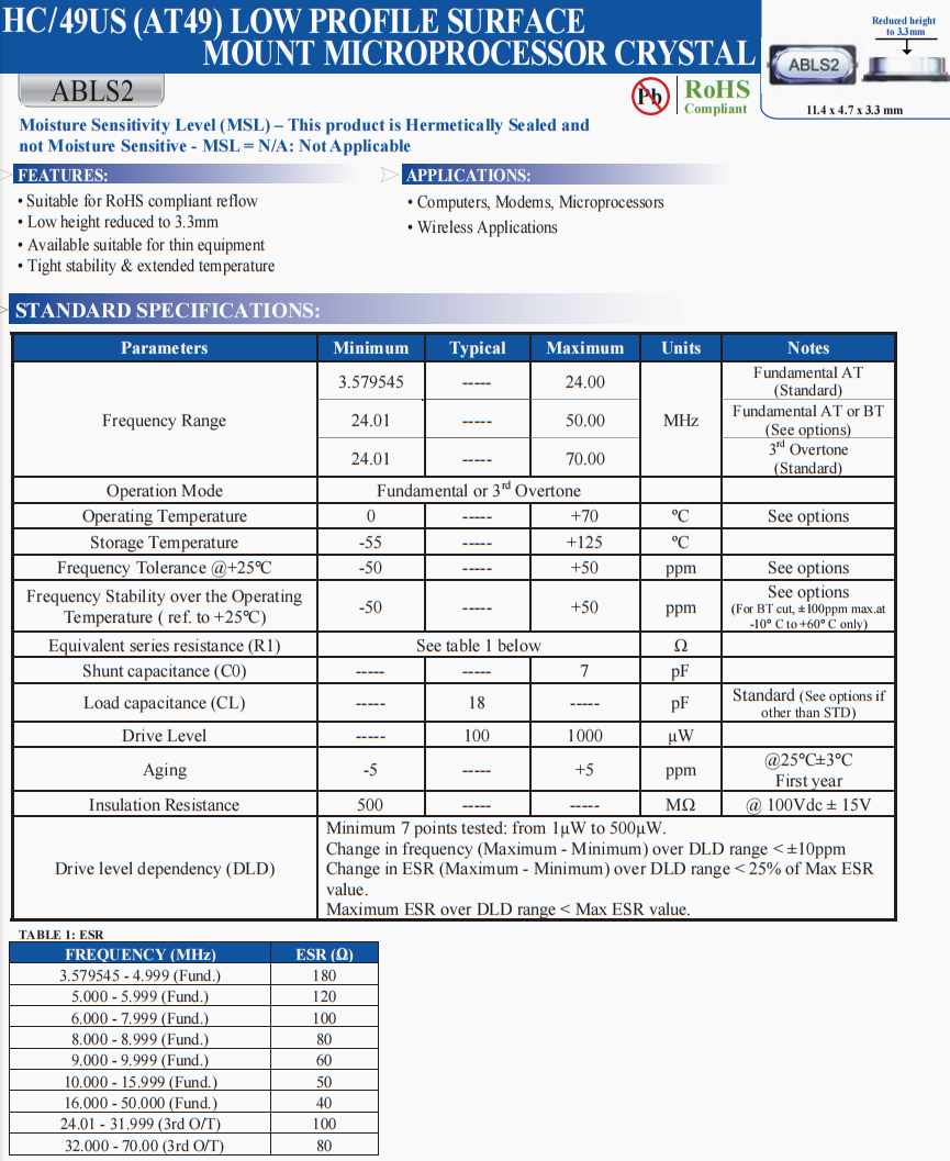 ABLS2-18.432MHZ-D4Y-T | Abracon | ABLS2 | 18.432 MHz | ±30ppm | ±30ppm | 18 pF |