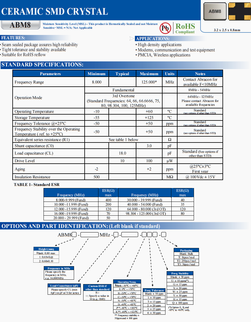 ABM8-18.432MHZ-B2-T | Abracon | ABM8 | 18.432 MHz | ±50ppm | ±20ppm | 18 pF |