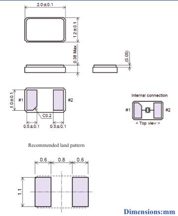 頻率溫度特征 | f_tem | ±20 × 10-6/-20°C ~ +70°C | 超出標準的規格請聯系我們. |