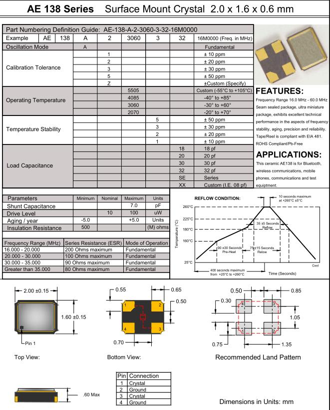 Anderson晶振,AE138晶振,AE138-A23060332-16M0000晶振