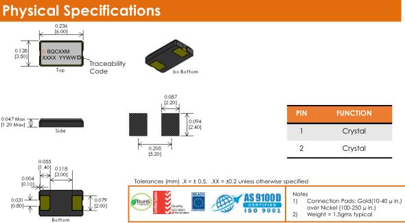 C0 (Shunt Capacitance) | Max (typical) | 5.0 | pF | |