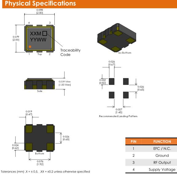 Frequency Range | See options (min) | ±2, ±5 | ppm | ||