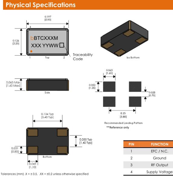 Frequency Range | See options (min) | ±5, ±10 | ppm | ||