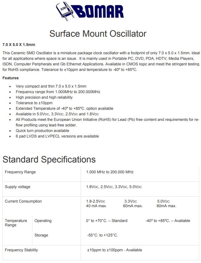 Bomar晶振公司不斷的推出滿足市場的Bomar石英晶振,石英晶體振蕩器,OCXO晶振等元件,為研發(fā)出更小封裝的進(jìn)口Bomar石英晶振及具備低相位晶振,他們付出了極大的努力,并且研發(fā)出的產(chǎn)品通過ISO認(rèn)證,質(zhì)量有保障,價(jià)格合理.Bomar晶振,B1325-AACS3T-10.000000晶振,時(shí)鐘振蕩器.