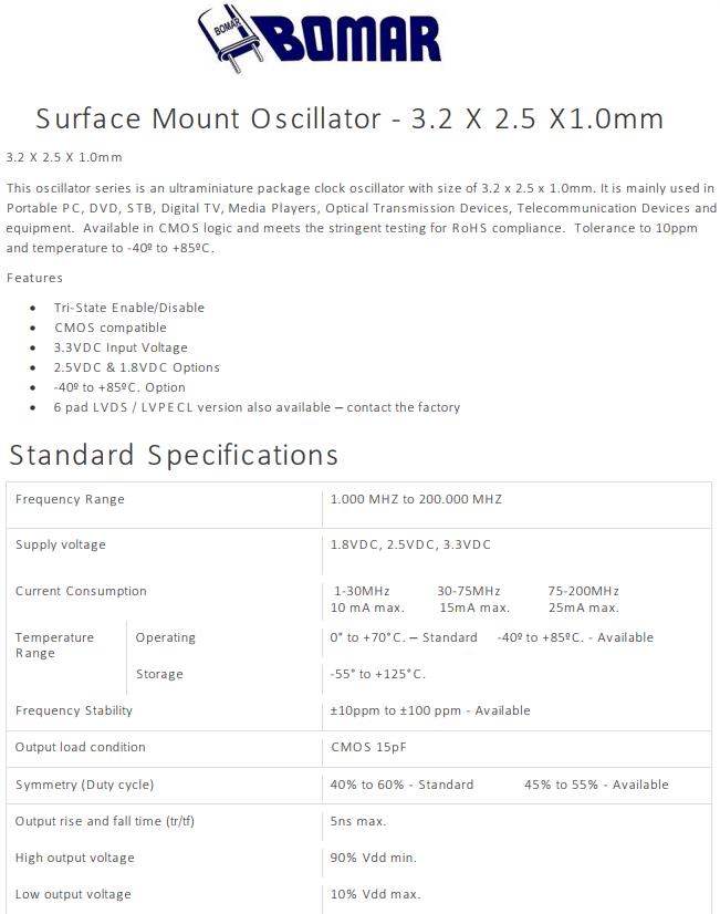 Bomar晶振,B1325-AABS3T-10.000000晶振,SMD晶體振蕩器