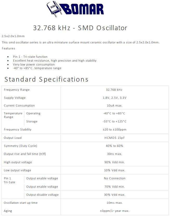 Bomar晶振,B1350-AEAS3T-32.768kHz晶振,晶體振蕩器