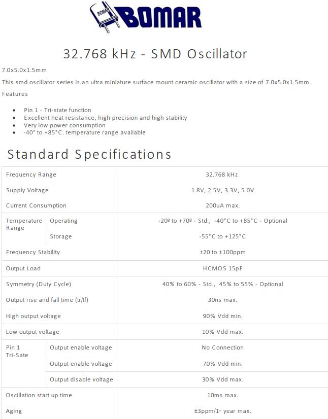 Frequency Range | 32.768 kHz | |