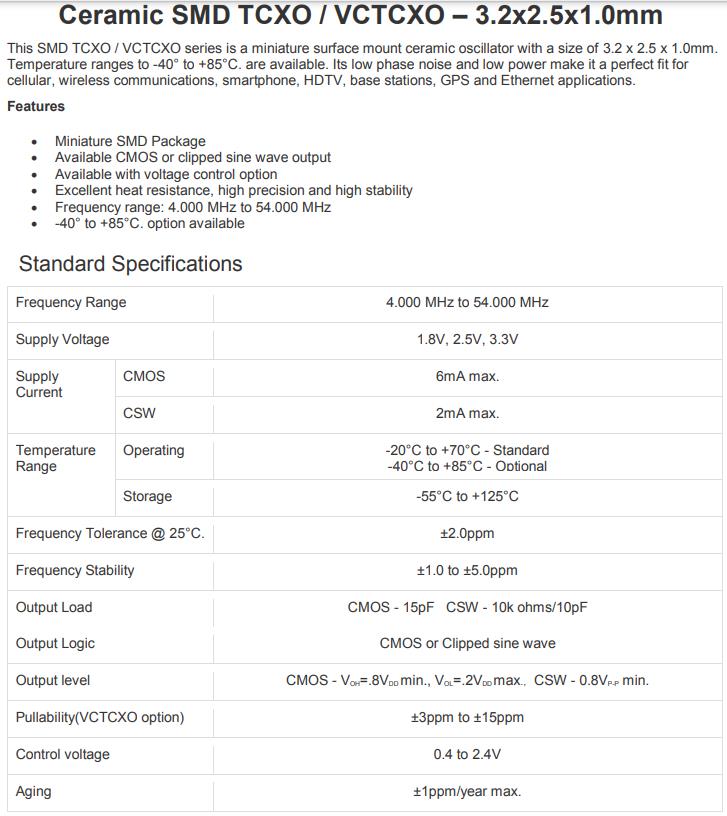 Frequency Stability | ±1.0 to ±5.0ppm | |
