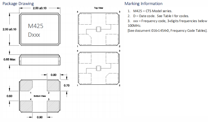 425F39B016M0000 | CTS晶振 | 425 | MHz Crystal | 16MHz |
