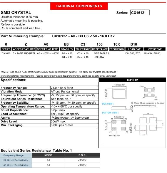 Cardinal晶振規格 | 單位 | CX1612晶振頻率范圍 | 石英晶振基本條件 |