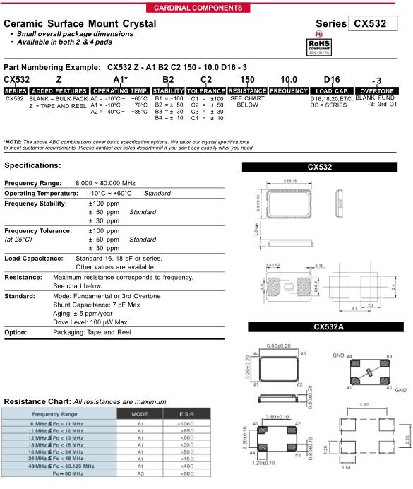 Cardinal晶振,CX532晶振,CX532Z-A1B2C2150-10.0D16-3晶振