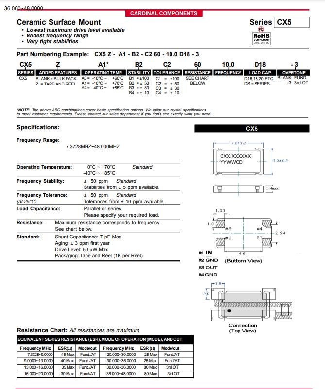 Cardinal晶振規格 | 單位 | CX5晶振頻率范圍 | 石英晶振基本條件 |
