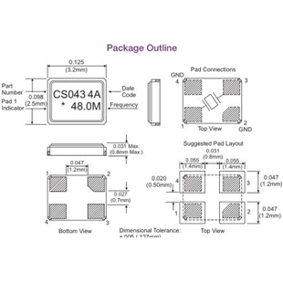 用于JEDEC J-STD-020D.01回流條件的耐熱可用性需個別判斷。請聯系我們以便獲取相關信息。ConnorWinfield晶振,CS-043晶振,CS-043-048.0M晶振.