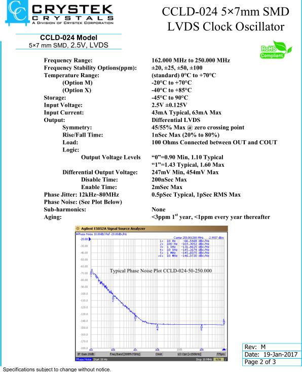 Crystek晶振,CCLD-024晶振,CCLD‐024X‐50‐250.000晶振