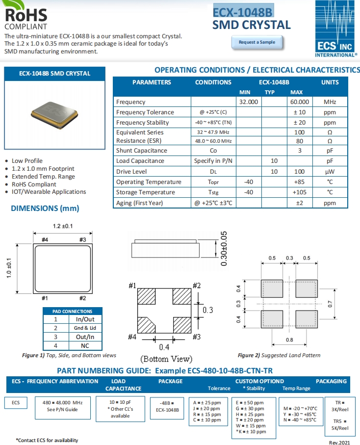 ECS-480-8-48-RTN-TR | ECS晶振 | ECX-1048 | 48MHz | -40°C ~ 85°C |
