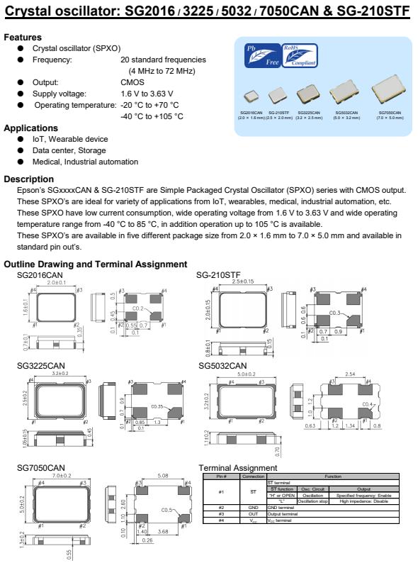愛普生晶振,SG5032CAN晶振,有源四腳晶振,SG5032CAN 12.000000M-TJGA3