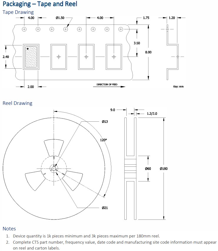 402F240XXCKR | CTS晶振 | 402 | MHz Crystal | 24MHz | 4-SMD, No Lead |