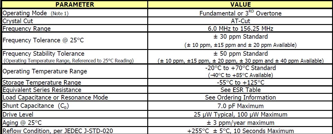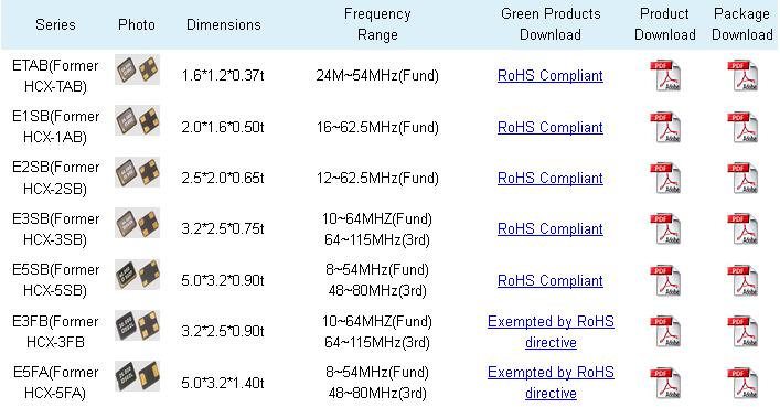 AEL原廠編碼 | 品牌 | 型號 | 工作溫度 | 頻率 | 頻率穩(wěn)定度 |