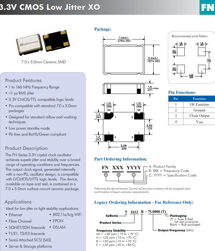 FN7500043 | Diodes晶振 | SaRonix-eCera™ FN | 75MHz | ±25ppm | -20°C ~ 70°C |