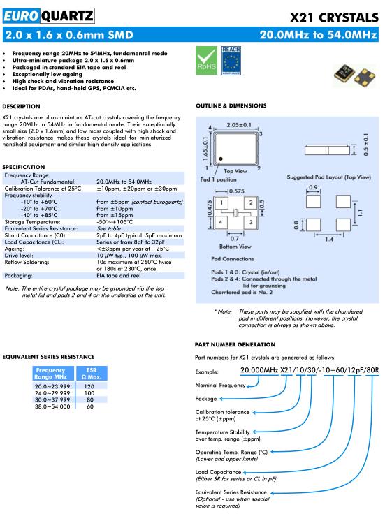 Euroquartz晶振規格 | 單位 | X21晶振頻率范圍 | 石英晶振基本條件 |