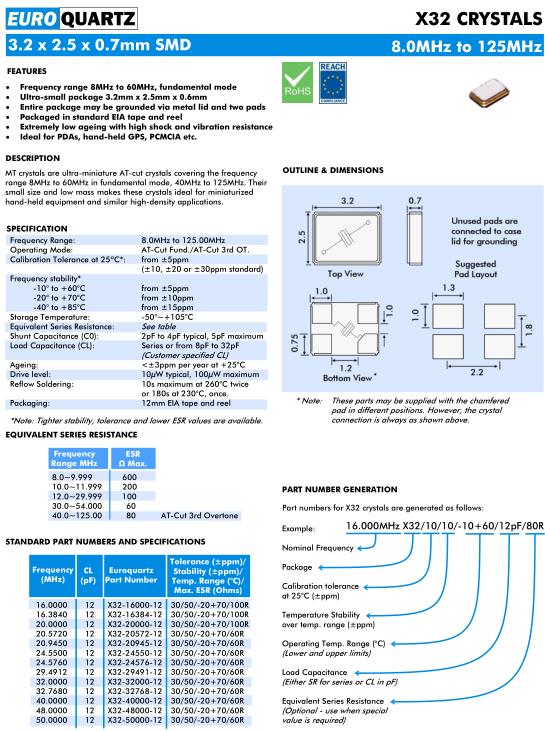 Euroquartz晶振規格 | 單位 | X32晶振頻率范圍 | 石英晶振基本條件 |
