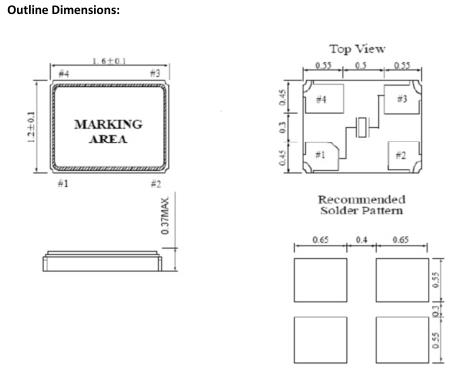 Enclosure (see drawing) (LxWxH) | 1.6 x 1.2 x 0.40 | mm | |||