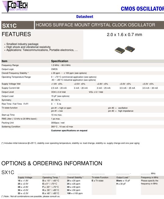FCD-Tech晶振,SX1C晶振,SX1C-28F20EH-12.000MHz晶振
