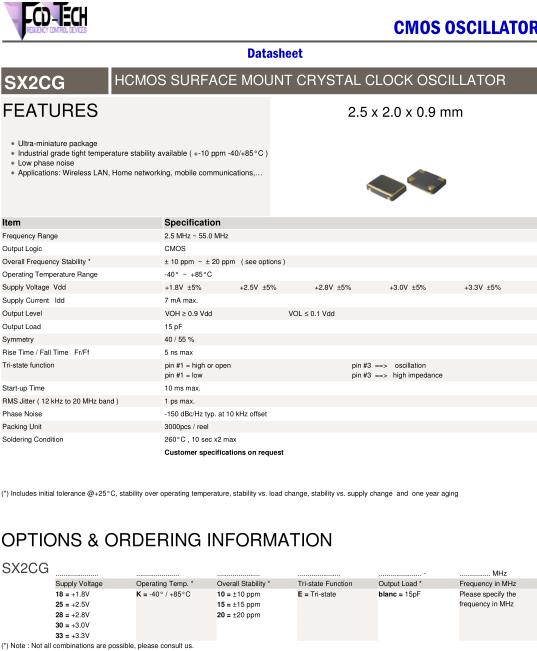 用于JEDEC J-STD-020D.01回流條件的耐熱可用性需個別判斷。請聯系我們以便獲取相關信息。FCD-Tech晶振,SX2CG晶振,SX2CG-30K15E15pF-26.000MHz晶振.