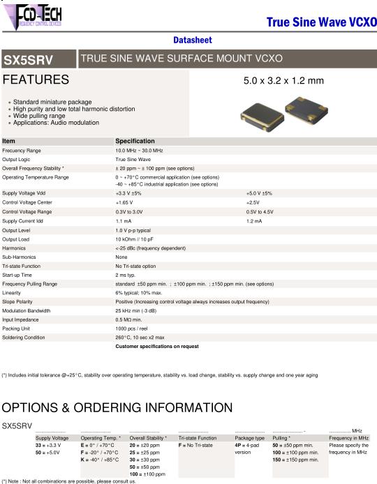 Frequency Pulling Range | standard ±50 ppm min. ; ±100 ppm min. ; ±150 ppm min. (see options) | |