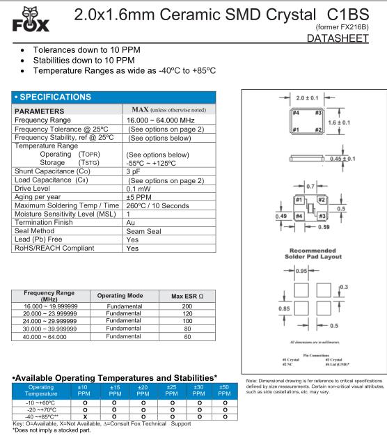 FOX晶振規格 | 單位 | C1BS晶振頻率范圍 | 石英晶振基本條件 |