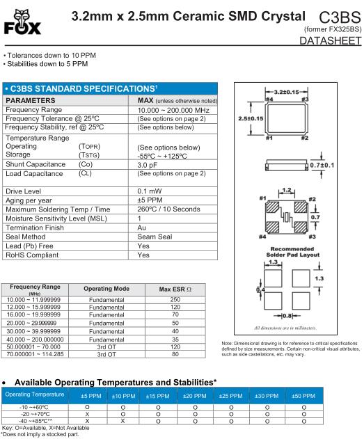 FOX晶振規格 | 單位 | C3BS晶振頻率范圍 | 石英晶振基本條件 |