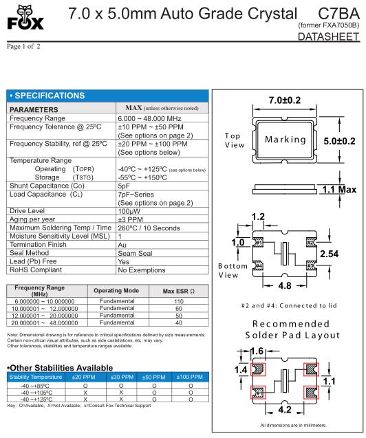 FOX晶振規格 | 單位 | C7BA晶振頻率范圍 | 石英晶振基本條件 |