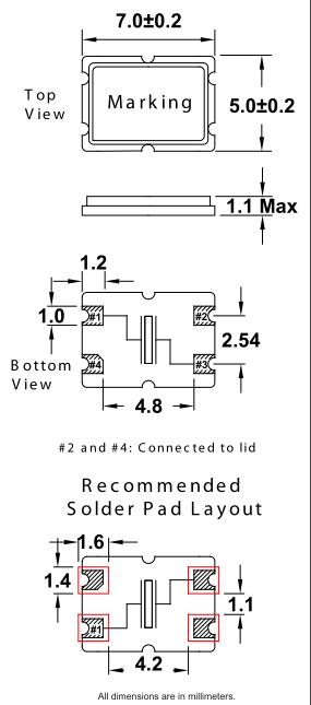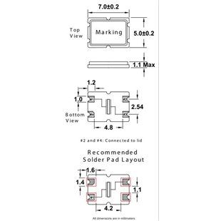 頻率溫度特征 | f_tem | ±20 × 10-6~±100 × 10-6/-10°C ~ +60°C | 超出標準的規格請聯系我們. |