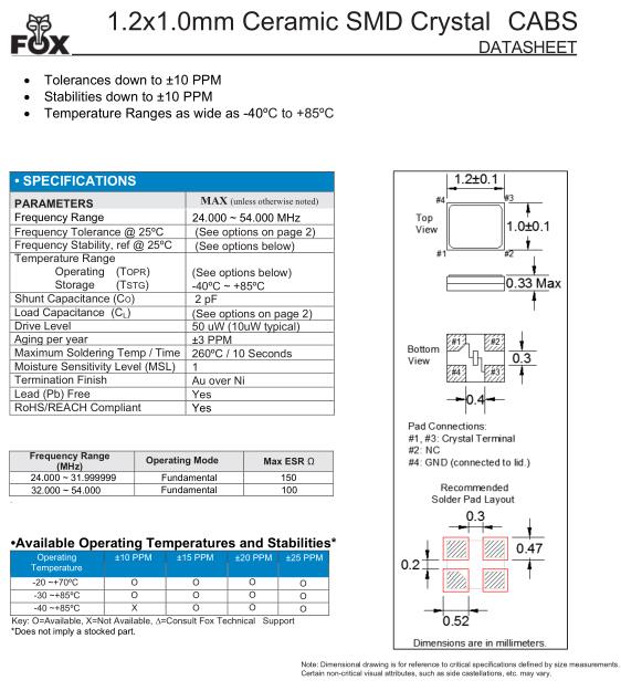 FOX晶振規格 | 單位 | CABS晶振頻率范圍 | 石英晶振基本條件 |