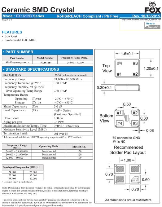 FOX晶振規格 | 單位 | FX1612B晶振頻率范圍 | 石英晶振基本條件 |