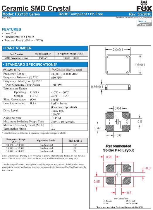 FOX晶振規格 | 單位 | FX216C晶振頻率范圍 | 石英晶振基本條件 |