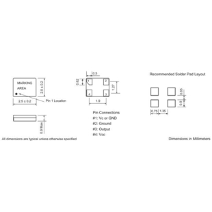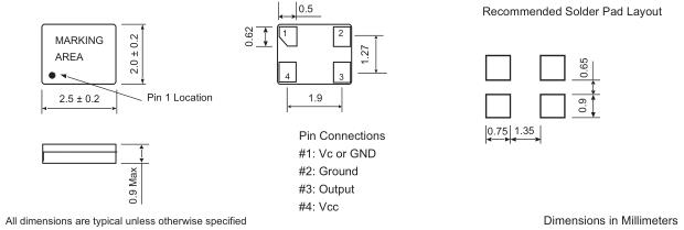 Frequency Stability vs Temp. | 005 = ±0.5 ppm; 010 = ±1 ppm; 025 = ±2.5 ppm (not all combination is available) |