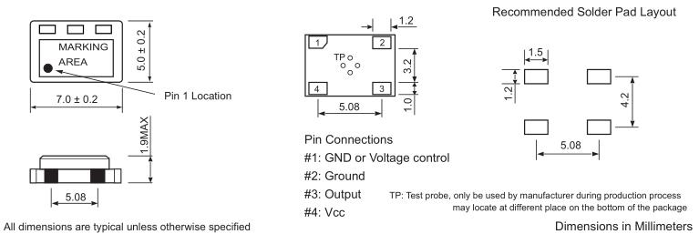 Control Voltage (Vc) | 2.5±2.0 VDC for Vcc = 5 VDC; 1.65±1.5 VDC for Vcc = 3.3 VDC |