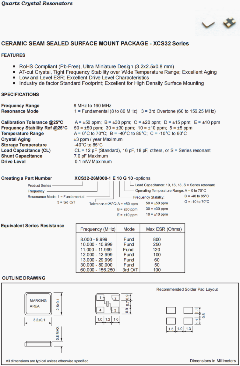 共振模式 | 1 = Fundamental (8 to 80 MHz); 3 = 3rd Overtone (60 to 156.25 MHz) |