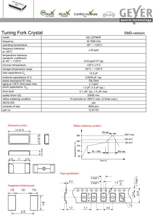 GEYER晶振規格 | 單位 | KX-327NHF晶振頻率范圍 | 石英晶振基本條件 | |