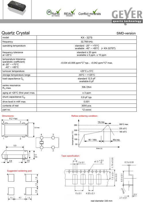 GEYER晶振規(guī)格 | 單位 | KX-327S晶振頻率范圍 | 石英晶振基本條件 | |