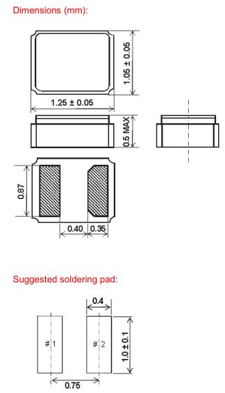 頻率溫度特征 | f_tem | ±20 × 10-6 ,10°C ~ +60°C | 超出標準的規格請聯系我們. |