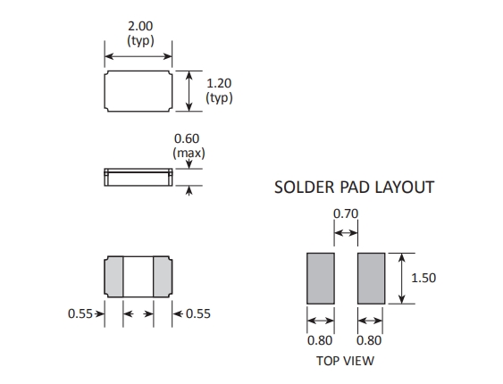 激勵功率 | DL | 0.5μW Max. | 推薦:1μW ~ 100μW |