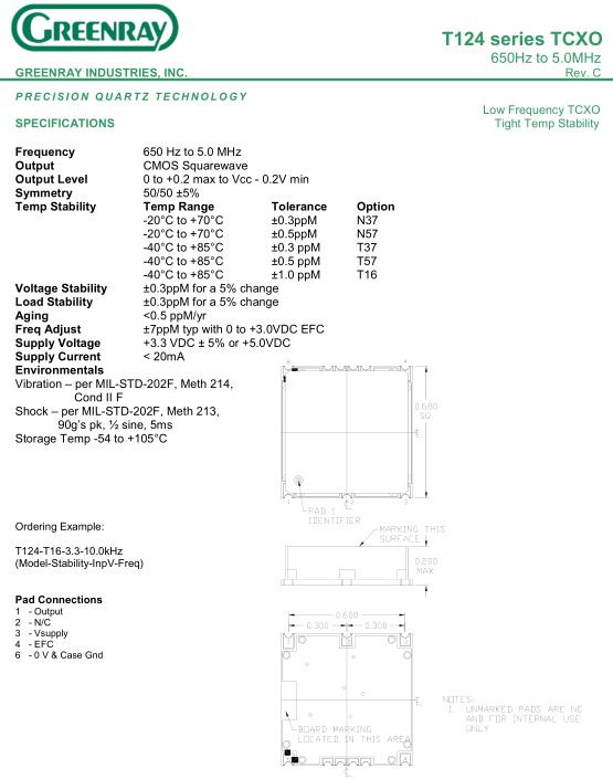 格林雷晶振,T124晶振,T124-T16-3.3-10.0kHz晶振