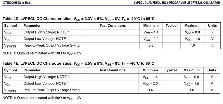 1電平電壓 | VOH | VCC-1.025~VCC-0.88V |