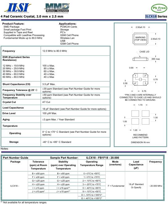 ILSI晶振規格 | 單位 | ILCX18晶振頻率范圍 | 石英晶振基本條件 | |